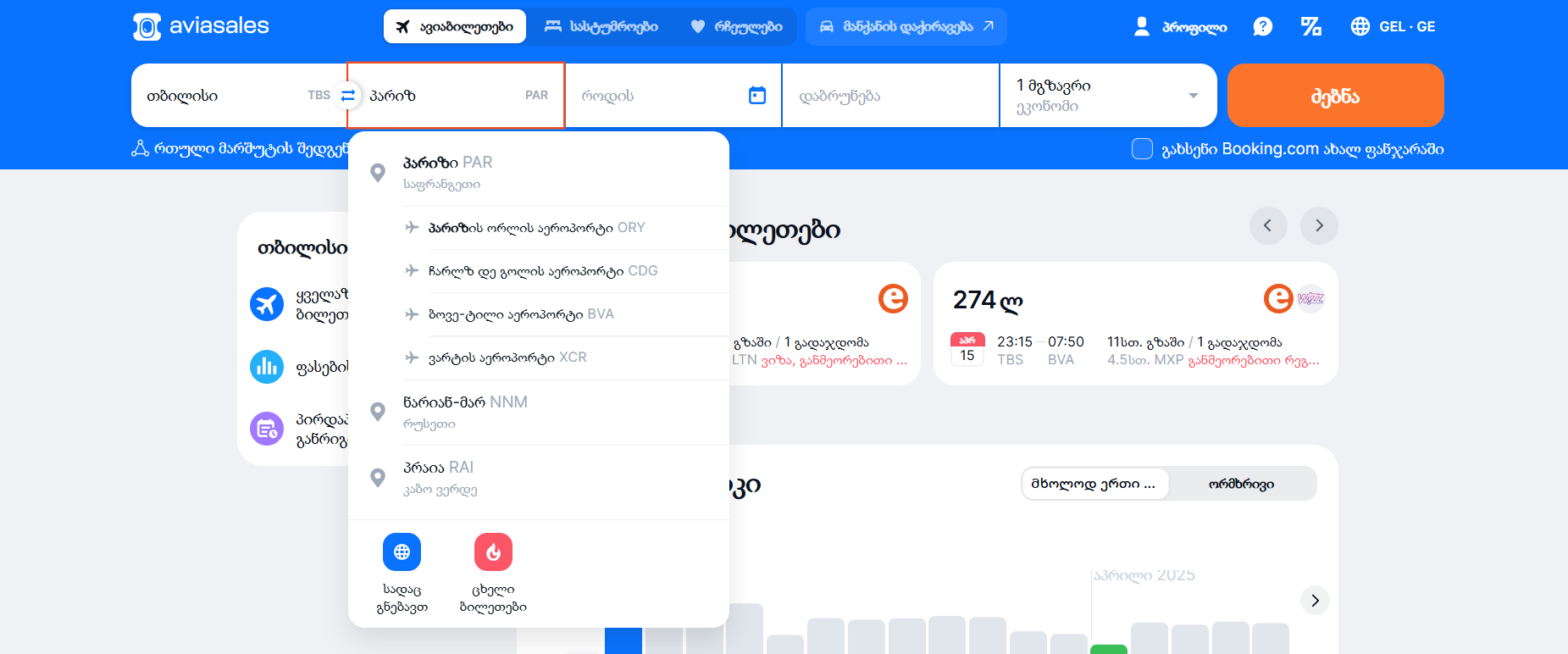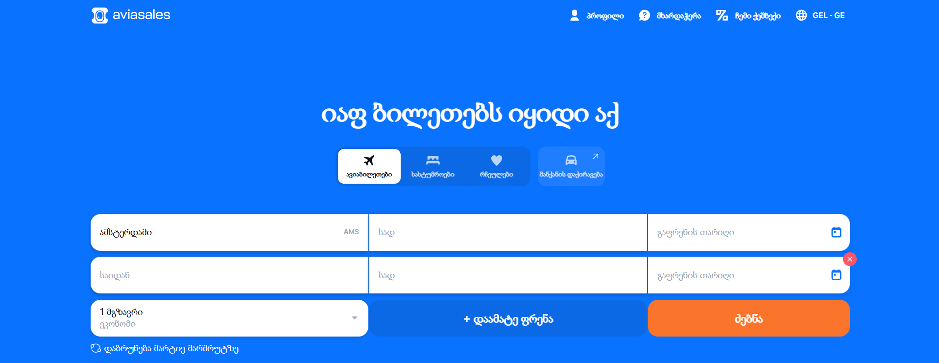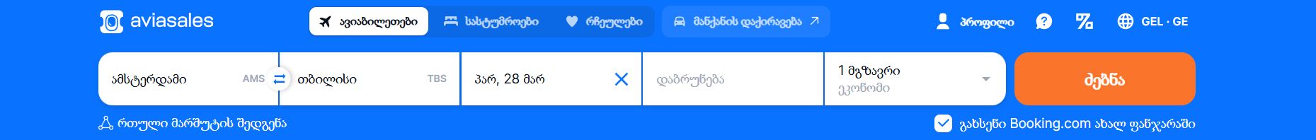 - აირჩიეთ თქვენი გამგზავრების და დანიშნულების ქალაქები.